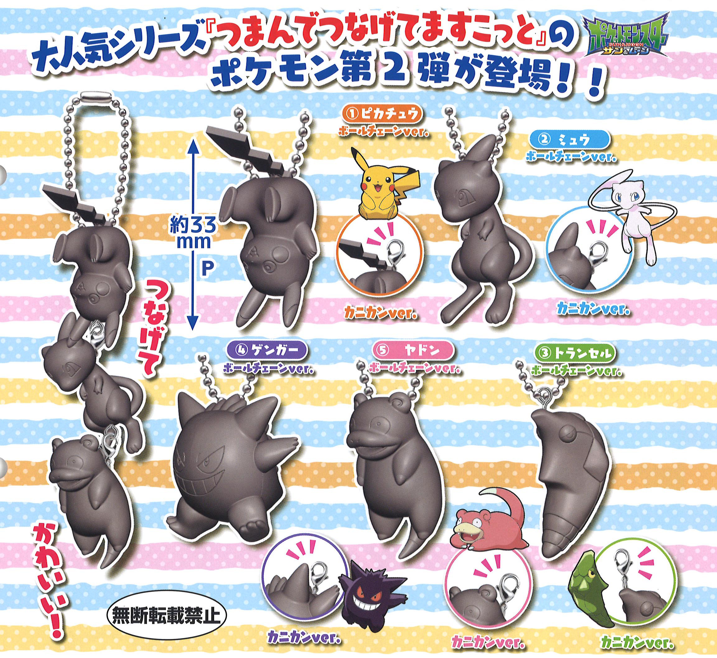 Des gashapons qui peuvent s’attacher entre elles pour donner une longue chaine de Pokemon.