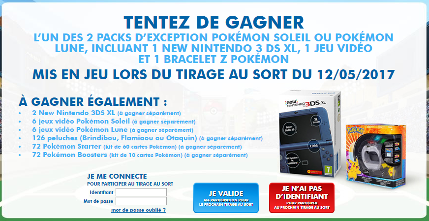 1 New Nintendo 3DS XL + 1 jeu vidéo Pokémon Lune Nintendo 3DS + 1 bracelet Z. Valeur totale commerciale indicative de 275 € TTC