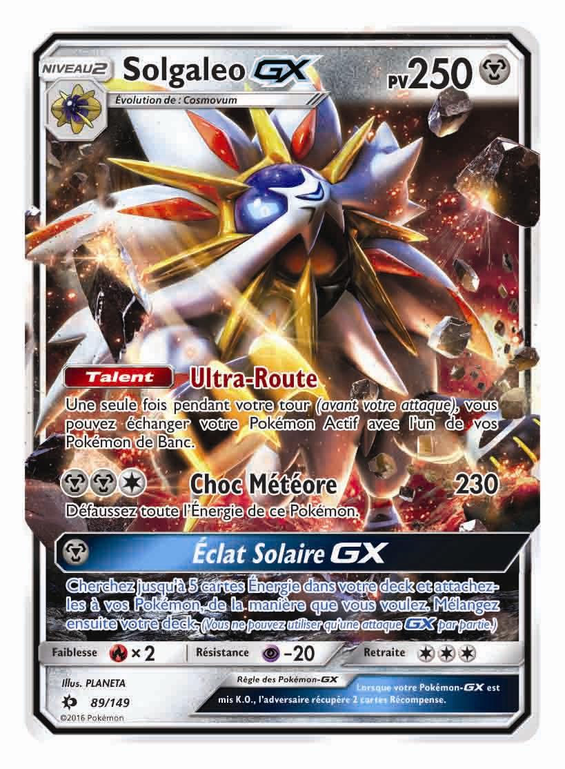 • Les Pokémon légendaires : Solgaleo et Lunala, les Pokémon légendaires des jeux vidéo Pokémon Soleil et Pokémon Lune, rejoignent le JCC Pokémon en tant que nouveaux Pokémon-GX.