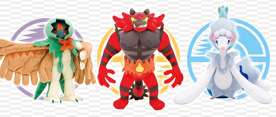 Des peluches, encore et toujours, avec la sortie des formes finales pour les Starter d’Alola, sortie le 22 avril, chaque peluche va coûter 3 200 yen.