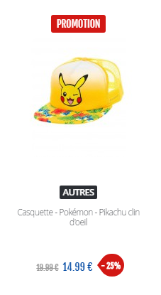 Si vous avez besoin d’une casquette Pokémon, 2 modèles bénéficie d’une réduction de -25%. Ainsi, vous pouvez sortir couvert à tout moment !