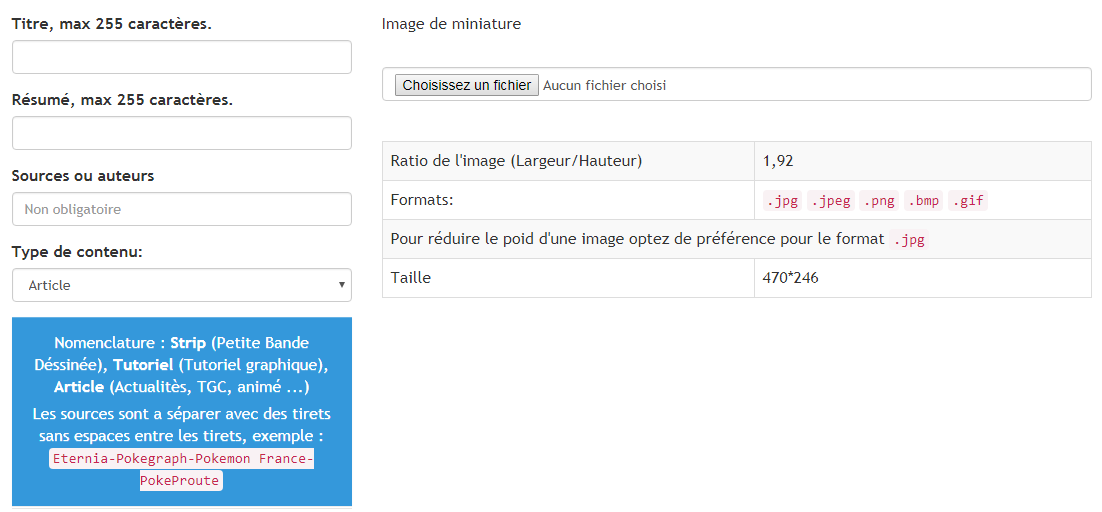 - Le type de contenu correspond au type de votre article : Article (pour les news JV, animé, TCG …), Tutoriaux ou strip.
