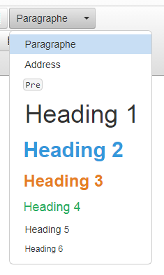 Le bouton Paragraphe correspond au format des titres dans votre article. Vous pouvez utiliser uniquement les Heading 2, 3 et 4 (bleu, orange et vert) qui correspondent dans l’ordre au titre, sous-titre et sous-sous-titre. De plus, si vous mettez un Heading 2 dans votre article, cela veut dire qu’il y aura forcement un second Heading 2 plus bas. Idem pour les deux autres Heading.