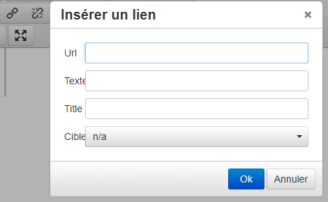 . Une boite de dialogue s’ouvrira et vous aurez juste les deux premiers champs à remplir : URL et Texte.