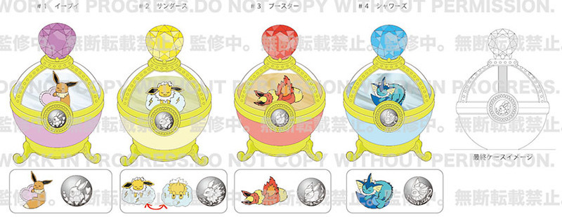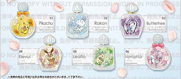 Premiers aperçue des nouveautés de la marque Re-ment avec une collection nommé « petite fleur » qui portrait des Pokémon dans des bouteilles de parfum et une autre « Dreaming case » qui elle concerne les Evolitions.
