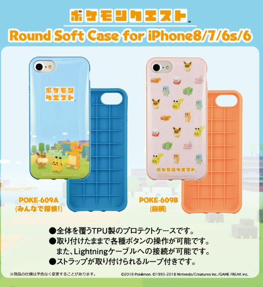 La marque « gourmandise » propose des coques de portable (Iphone et universelle) autour de Pokémon Quest et de Let’s Go ! Chaque coque coûte 2 000 yen.
