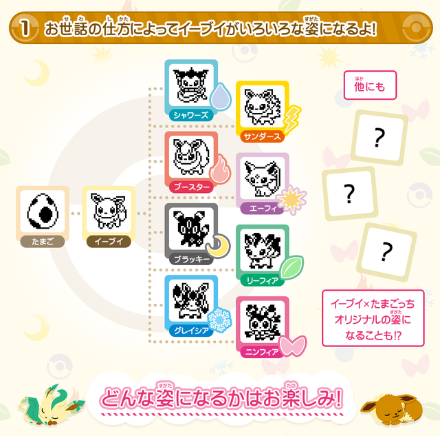 Le Tamagochi Evoli arrive ! Celui-ci vous permettra d’élever votre petit Evoli et d’obtenir une de ses évolitions par la suite. Le système est exactement le même qu’un Tamagochi classique.