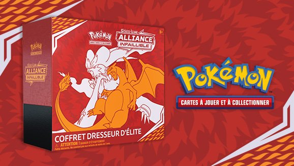 Contenu : 8 boosters de Soleil et Lune – Alliance Infaillible du JCC Pokémon, 65 protège-cartes au motif de Reshiram et Dracaufeu, 45 cartes Énergie, 1 guide de jeu de l’extension Soleil et Lune – Alliance Infaillible, 6 dés marqueurs de dégâts, 1 dé lancer de pièce autorisé en compétition, 2 marqueurs d’États Spéciaux en acrylique et 1 marqueur GX ESCOUADE en acrylique, 1 coffret de collection avec 4 séparateurs, 1 carte à code pour le JCC Pokémon Online
