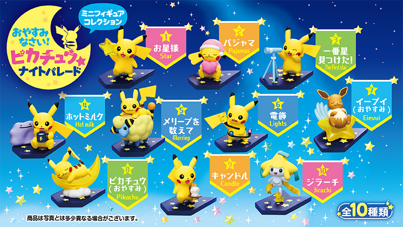 Le 20 avril 2019 sortira aux Pokémon Center du Japon des petites figurines de Pikachu sur le thème de la nuit et des étoiles, une boite coûtera 463 yen.