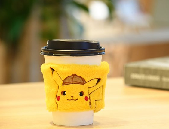 Et pour finir, la marque Lawson propose pour 1 080 yen cette manche à gobelet Détective Pikachu, qui vous permettra de boire votre café sans vous brûler.
