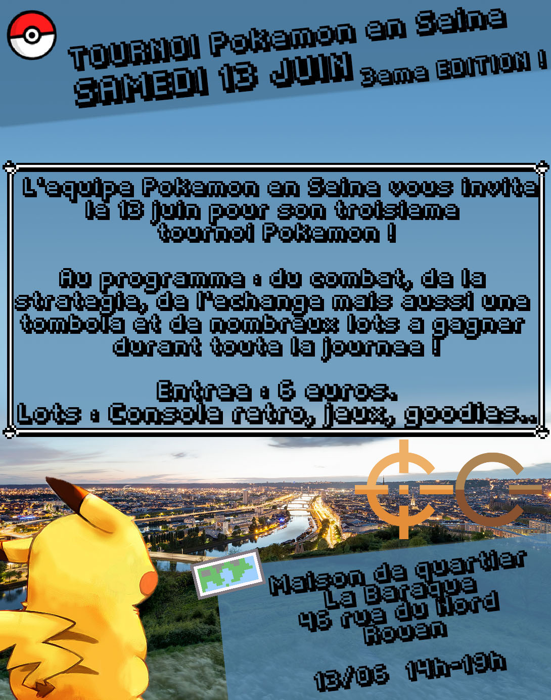 Pour participer au tournoi, pensez à vous pré inscrire en remplissant et envoyant le formulaire suivant par mail à pokemonenseine@gmail.com :