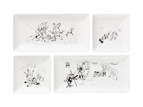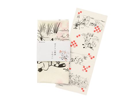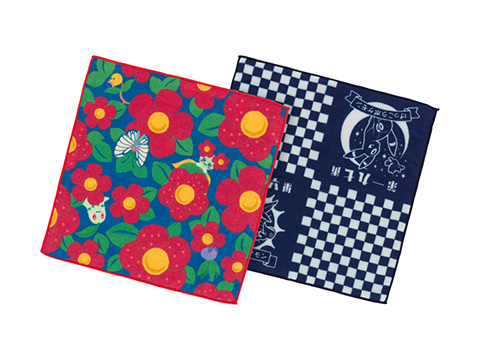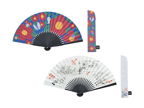 Voici une collection avec des dessins à l’encre, reprenant le style des estampes Japonaise, représenté sur quelques objets plus traditionnels comme des éventails ou des Tenugui (une sorte de fine serviette).