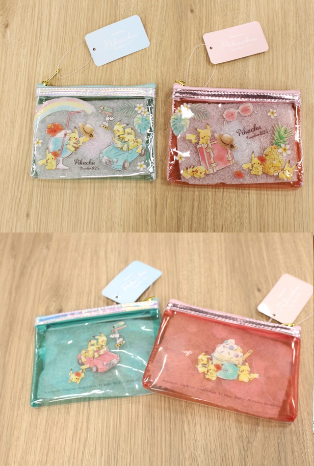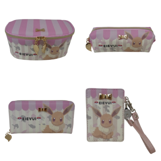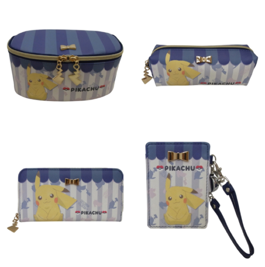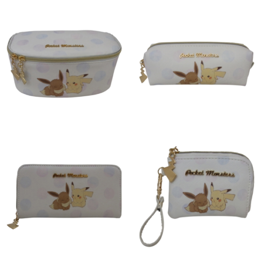 Au Pokémon center en ligne japonais, une collection de divers trousses et vanity avec Pikachu et Evoli est disponible