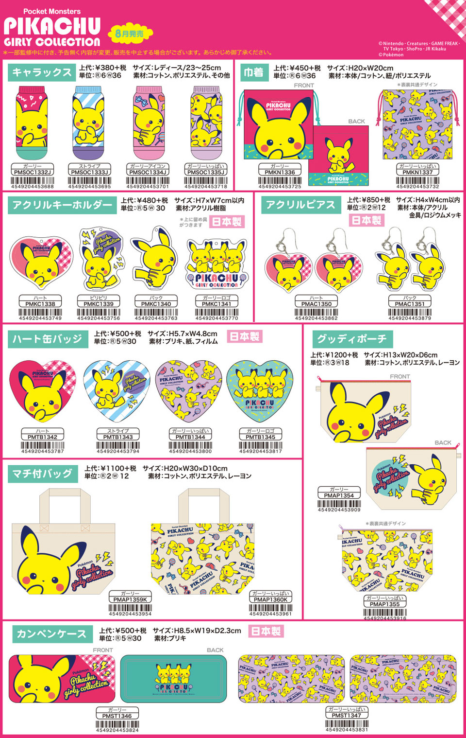 Pikachu girly collection, est une gamme de produit aux couleurs vives, abordant un Pikachu très simple à la Hello Kitty, ce qui le rend encore plus mignon, cette collection est vendu par divers magasins Japonais.