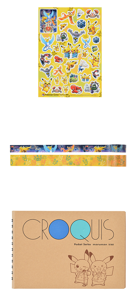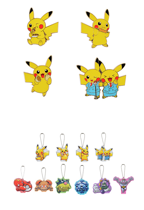 Ces goodies sortent à l’occasion de l’ouverture du Pokmon center et seront disponibles dans les autres Pokémon center du pays. Sur les porte clef, pin’s et stickers, vous pouvez remarquer deux Pikachu vêtu de costume bleu, sachez que c’est une référence au Manzai, une forme de spectacle comique japonais, se jouant en duo.
