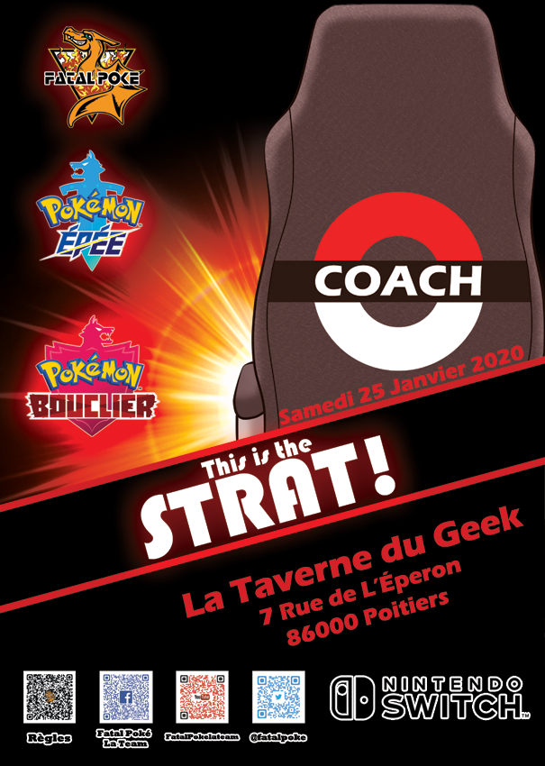 Voici l’annonce du prochain tournoi organisé par l’association Fatal Poké qui vous accueillera à La Taverne du Geek, à Poitiers le samedi 25 janvier 2020 à 16h, pour son nouveau tournoi original : This is the STRAT !