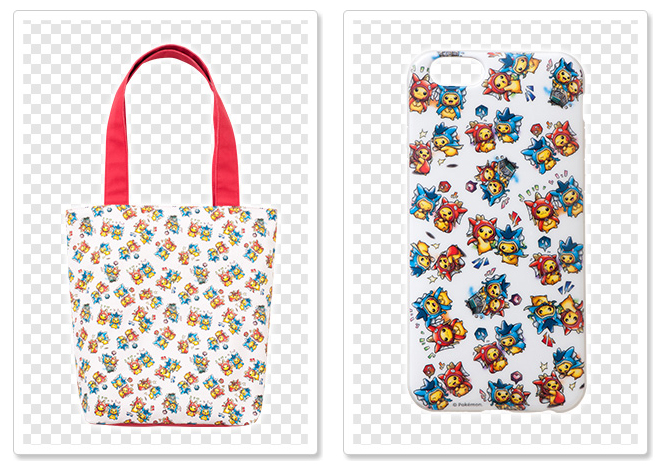 Un sac type Totbag et une coque pour Iphone remplis de petits Pikachu en Magicarp et Leviator