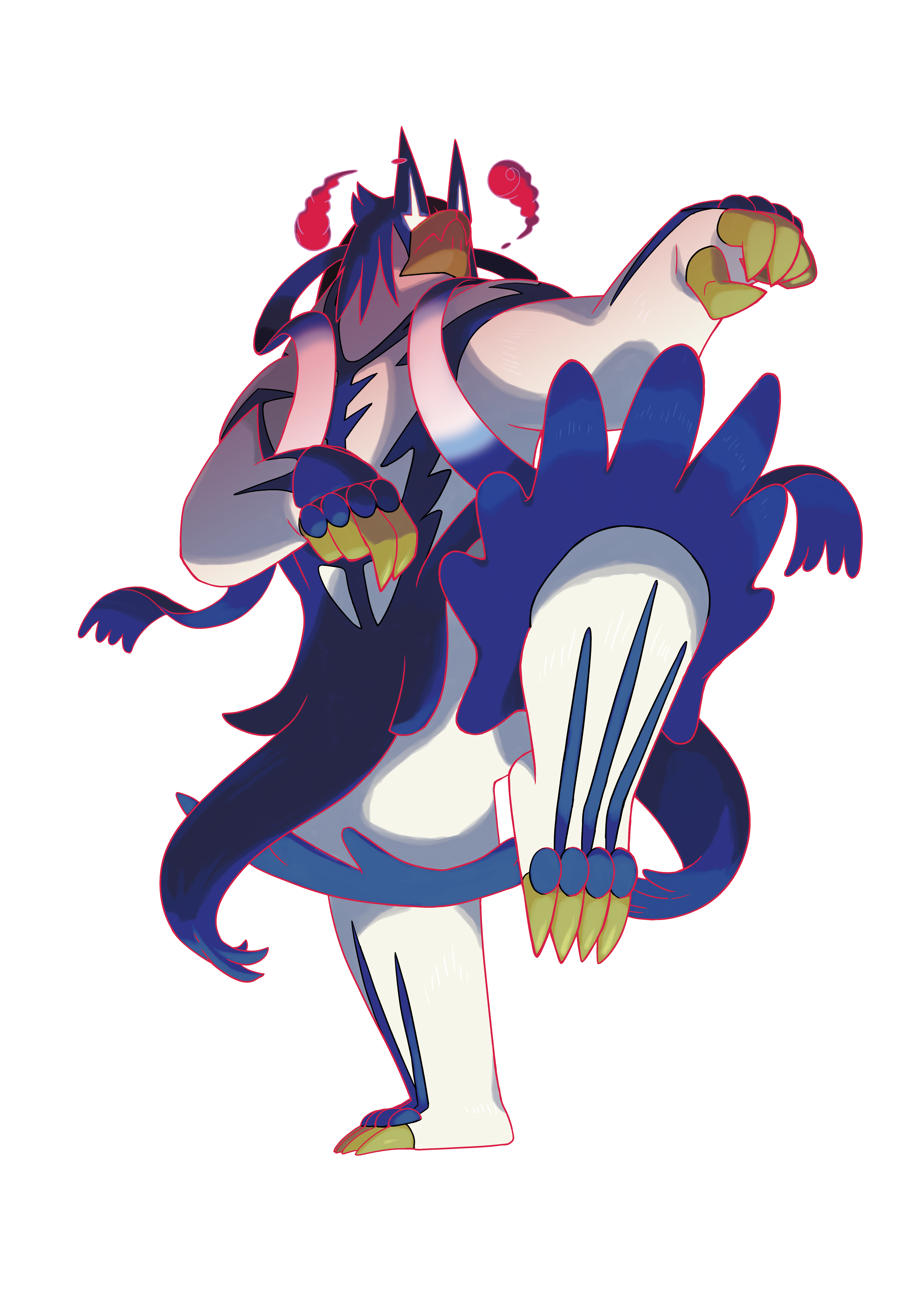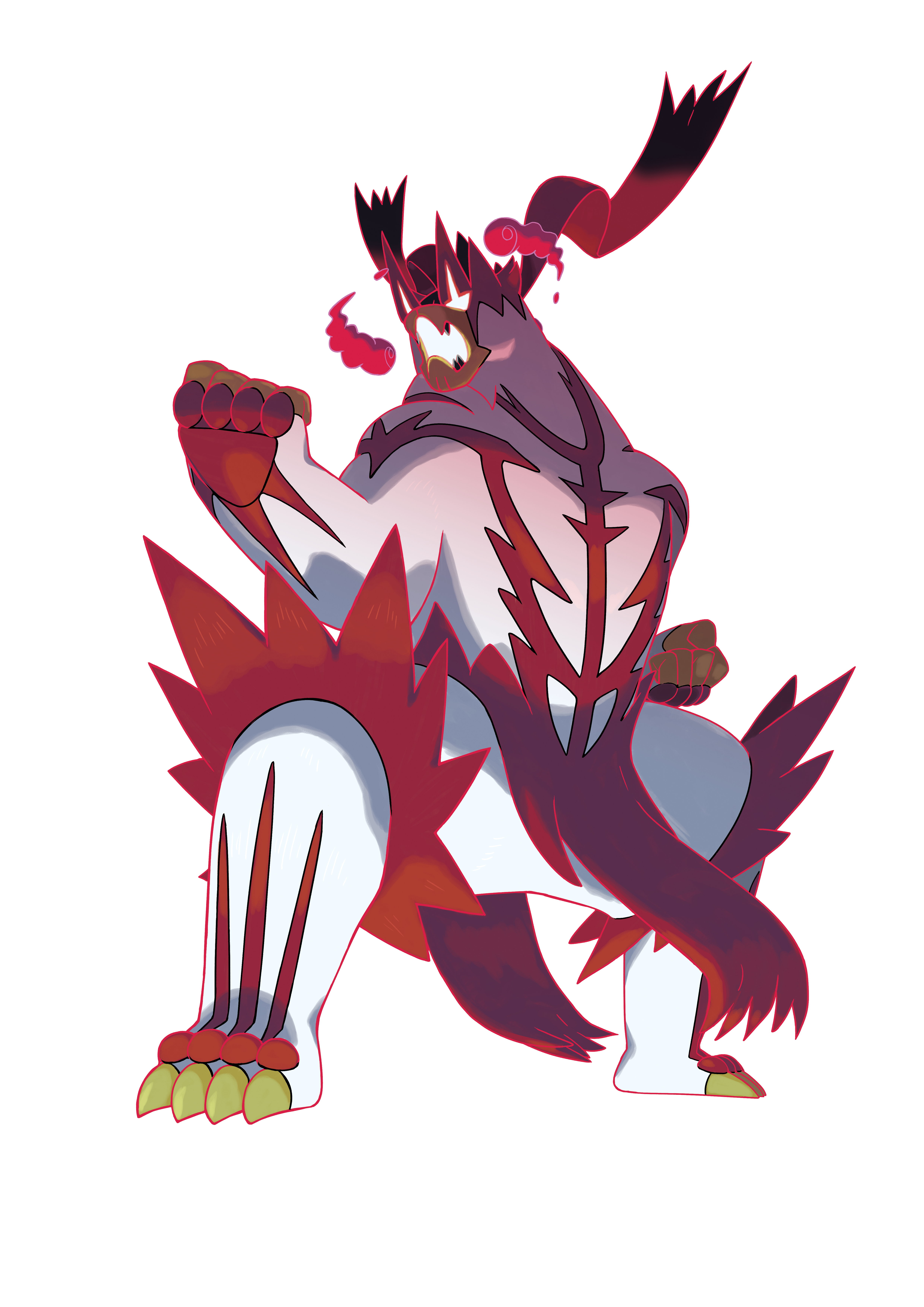 Ce Pokémon migrateur apparaît à Couronneige une fois tous les dix ans. Sa capacité signature est une capacité spéciale de type Ténèbres appelée Fureur Ardente. Grâce à elle, il peut transformer sa colère en une aura flamboyante pour attaquer. Elle peut aussi apeurer sa cible.