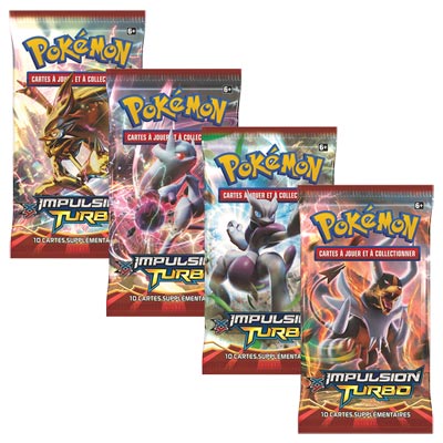 Quand un Pokémon évolue en un Pokémon TURBO, ses PV augmentent, il obtient une nouvelle attaque ou un nouveau talent, et il garde ses attaques existantes ! Les cartes des Pokémon TURBO se jouent horizontalement et se distinguent par leur motif brillant unique et leur illustration particulièrement détaillée.