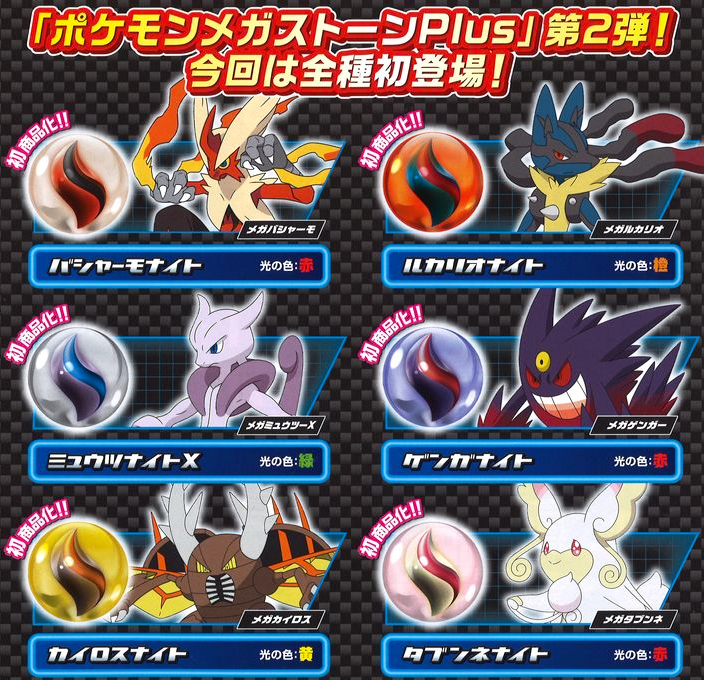 Takara Tomy sort des nouvelles éditions de ces Cashapon (en gros des oeuf des surprise qu’on obtient dans des machines), une avec les méga gemmes et l’autre avec des badges de dresseur!