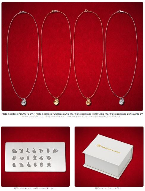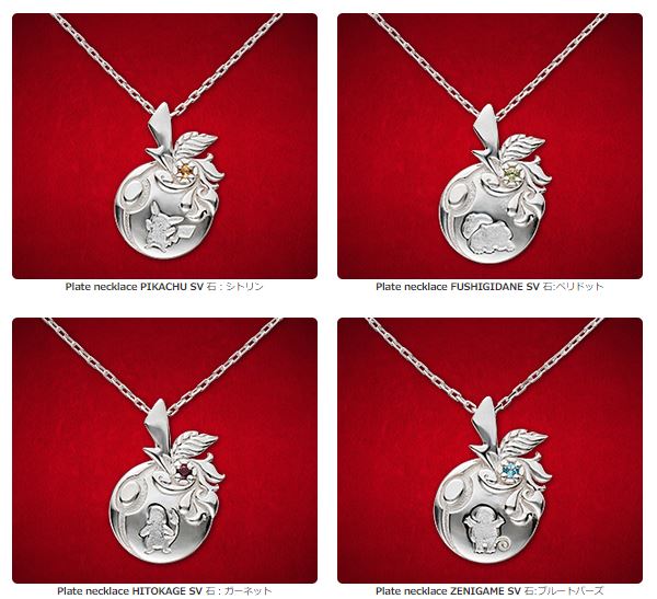 Encore une fois les colliers seront disponibles en différents alliages (argent, or jaune ou or rose) et seront sertis avec une pierre semi précieuse différente selon le Pokemon choisit, chaque Pokemon étant un starter!