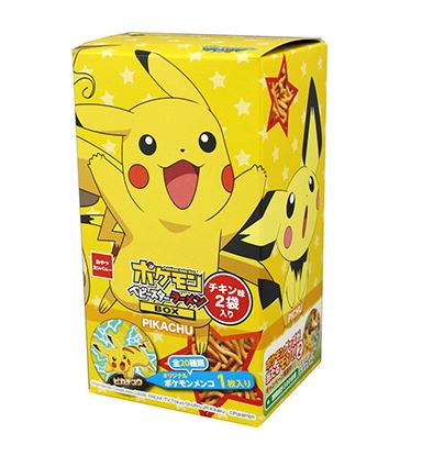 Une boite sur le thème de la famille Pikachu qui contient des nouilles.