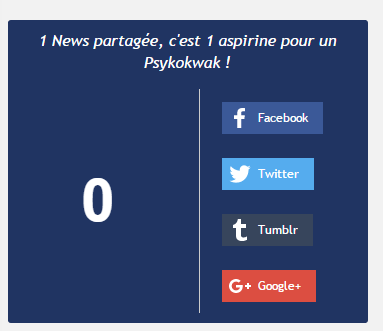 A droite de chaque news, vous avez la possibilité de les partager sur les réseaux sociaux Facebook, Twitter, Tumblr et Google+.