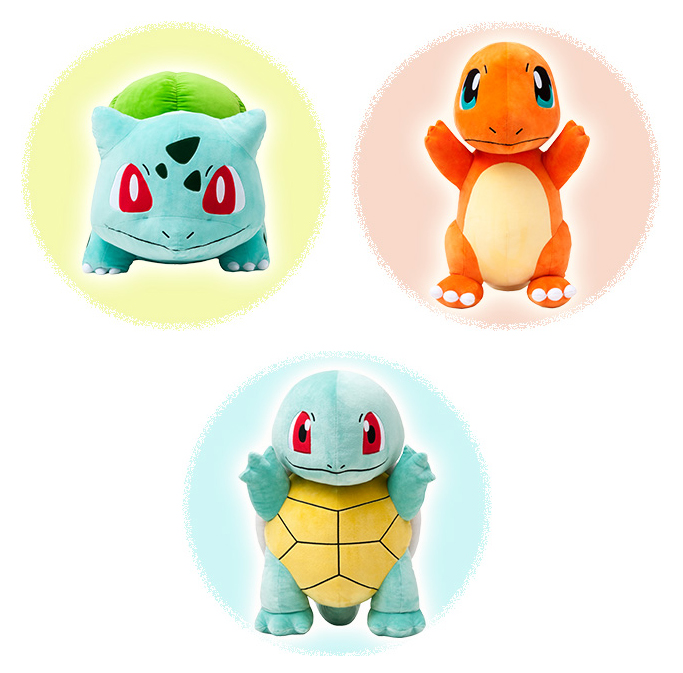 Il y aura aussi les grosses peluches (~ 50 cm) des starters de Kanto qui seront disponible dès le 27 Février
