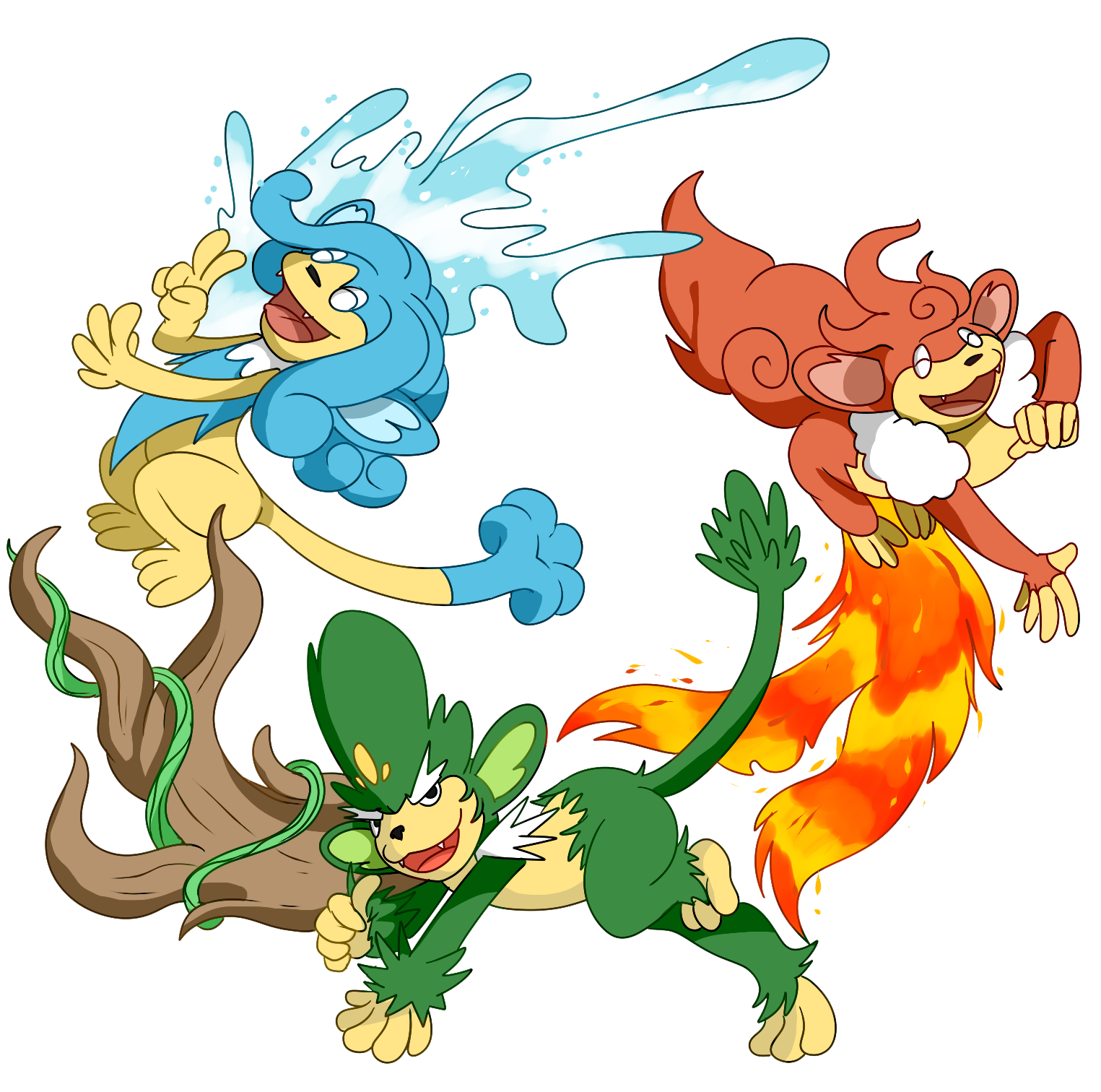 • Pour ce qui est du choix des formes animales, prenez en une qui est assez éloignée de la forme d’origine du pokémon (par exemple je ne veux pas de Persian en chat ou en tigre)