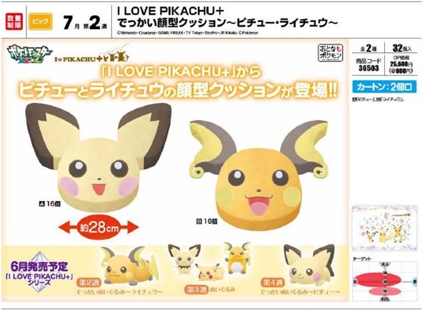 Et pour fini avec les peluches, encore du spoil de Branpresto avec de nouvelles peluche « I love Pikachu + » cette fois ci ont vois que deux coussins, un Pichu et un Raichu, seront disponible en Juin!