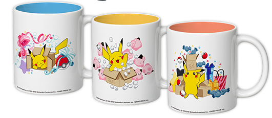 Sur le site du Pokemon center Japonais, des tasses exclusives sont disponibles, on y voit Pikachu en plein déménagement.