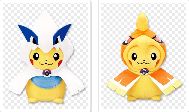 Le premier Pikachu est une grande peluche de 24 cm, disponible à partir du 21 Avril et les autres peluches sont de tailles plus modestes (~ 12 cm) et seront disponbile avec les coussins à partir du 7 Avril.