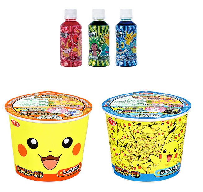 Un peu de nourriture avec ces nouveaux packaging de bouteilles et de Ramens avec pleins de Pikachu pour ces derniers.