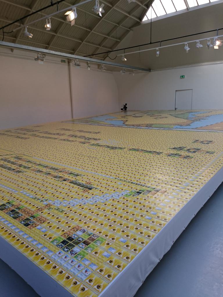 Q.D : J’ai utilisé beaucoup de logiciels spécialisés, et pour les achats, je me suis amusé avec différentes cartes afin de créer un effet de contraste à plusieurs niveaux. Pokémon m’a envoyé ces cartes depuis les Etats-Unis, par cartons. J’ai pu donc me servir de ces cartes ainsi que du pattern pour pouvoir faire cette mosaïque