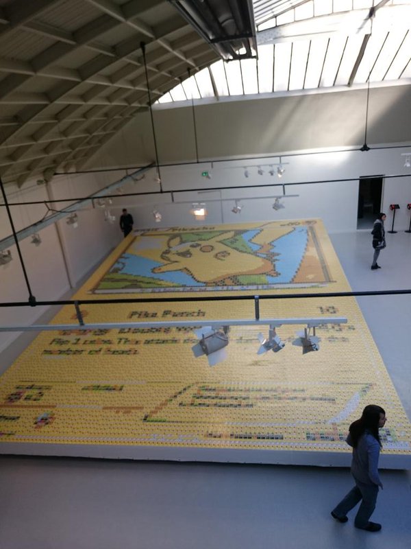 Quentin Devine a utilisé 12987 cartes pour réaliser cette mosaïque. Elle représente une carte de Pikachu. Elle mesure 13 mêtres de haut et 7 mêtres de large. Il a réalisé cette mosaïque en 3 à 4 semaines.