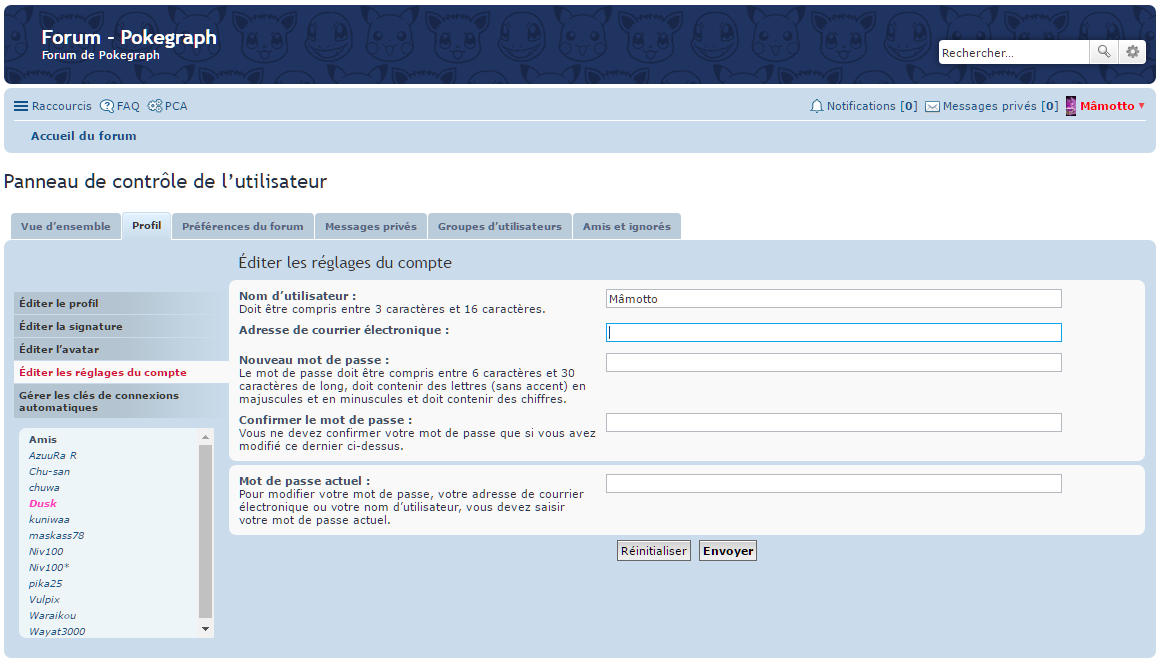 Vu que cette modification se fait sur la même page que le pseudo, profitez de ce moment pour le faire.