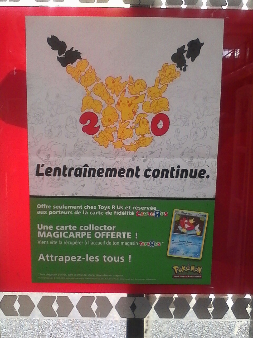 Edit 3 : Pour éclaircir tout ça, j’ai décidé d’allé au Toys R us le plus proche, au final les vendeurs ne sont pas plus au courant que nous ( ils ne savent pas les prochaines cartes) mais il y a des affiches sur les portes décrivant les modalité de l’offre, contrairement à Pikachu, pour avoir Magicarpe il vous faudra bien la carte de fidélité !