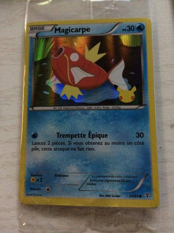 Et bah aujourd’hui, j’apprends par mes amis du Toys R Us de Torcy (77) que non seulement une nouvelle carte est sortie et il s’agit de Magicarpe mais aussi qu’il y en aura une nouvelle tous les mois.