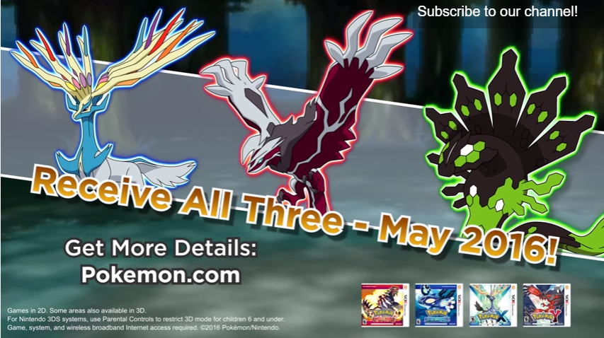 Xerneas sera donc disponible du 11 au 17 mai 2016 et Yveltal du 20 au 26 mai 2016 par Wi-Fi sur les consoles américaines.