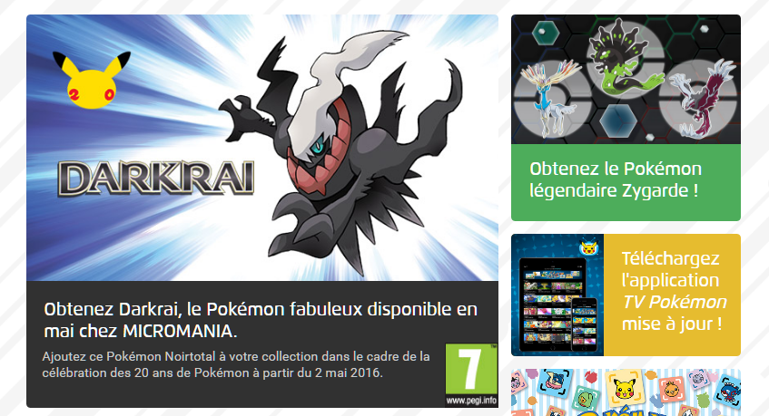 Pas de distribution d’annoncée à proprement parler, mais voyons ce que l’on peut retrouver sur la page d’accueil du site français de Pokémon :