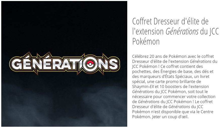 Personnellement je ne pense pas que ce soit une coïncidence ! Cette Elite Trainer Box est toujours annoncé sur le site officiel des 20 ans et le texte n’a pas changé. C’est aussi la première fois que nous aurons ce genre de box en France !