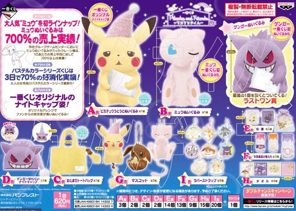 Il y a donc quatre mascottes pour cette loterie: Pikachu, Evoli, Mew et … Ectoplasma, voici la liste des lots (comme toujours plus on s’éloigne du A et plus le lot est facile a gagner) :