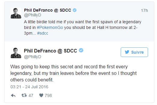 En gros, comprenez que tout ceux qui se rendront à la convention ComicCon de SanDiego, auront peut-ètre la chance de voir débouler un des trois oiseaux légendaires. Alors qu’ils représentent chacun une des trois teams dans le jeu, quelle équipe se verra avantagée ? Electhor ? Artikodin ? Sulfura ?