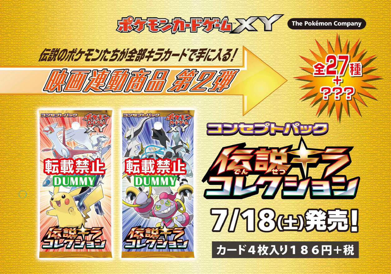 De plus, l’annonce de cette extension va de pair avec l’annonce d’une mini-série, dans le même style que la Shiny Collection, j’ai nommé le « Legendary Holo Concept Pack« , qui sortira le 18 Juin au Japon. Elle sera constituée de 27 cartes (hors secrètes) et inclura les légendaires qui seront dans le film 18 (et il y en a beaucoup ! )