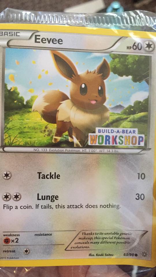 La marque « Build a Bear » très connue pour ces peluches personnalisables vas sortir une peluche d’Evoli dans le mois de Septembre (pas de dates exactes), il sera vendu avec une cape et une carte exclusive du pokemon.