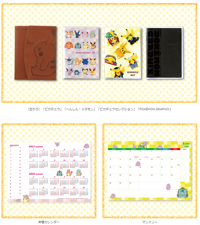 Il y aussi des planners et des calendrier en cette nouvelle rentrée, ils reprennent des images de collections comme les Metamorph ou Pikachu cosplayer. Disponible le 17 Septembre pour 1800 yens.