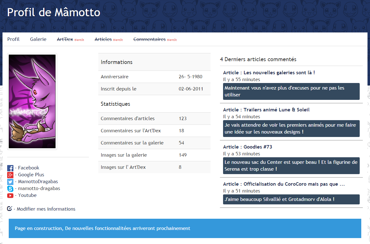Update : Votre page de Profil arrive sur le site !