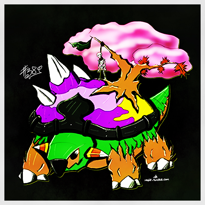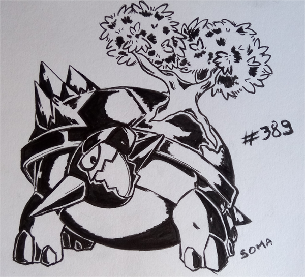 Bon Halloween à tous, j’espère que vous vous êtes bien gavés de bonbons (mais pas trop, vous savez que c’est cette période de l’année qui fait le bonheur des dentistes… ). En tout cas, j’ai reçu de beaux Torterra ! Et celui qui pourra rejoindre l’artdex est celui de… Waraikou 🙂 !