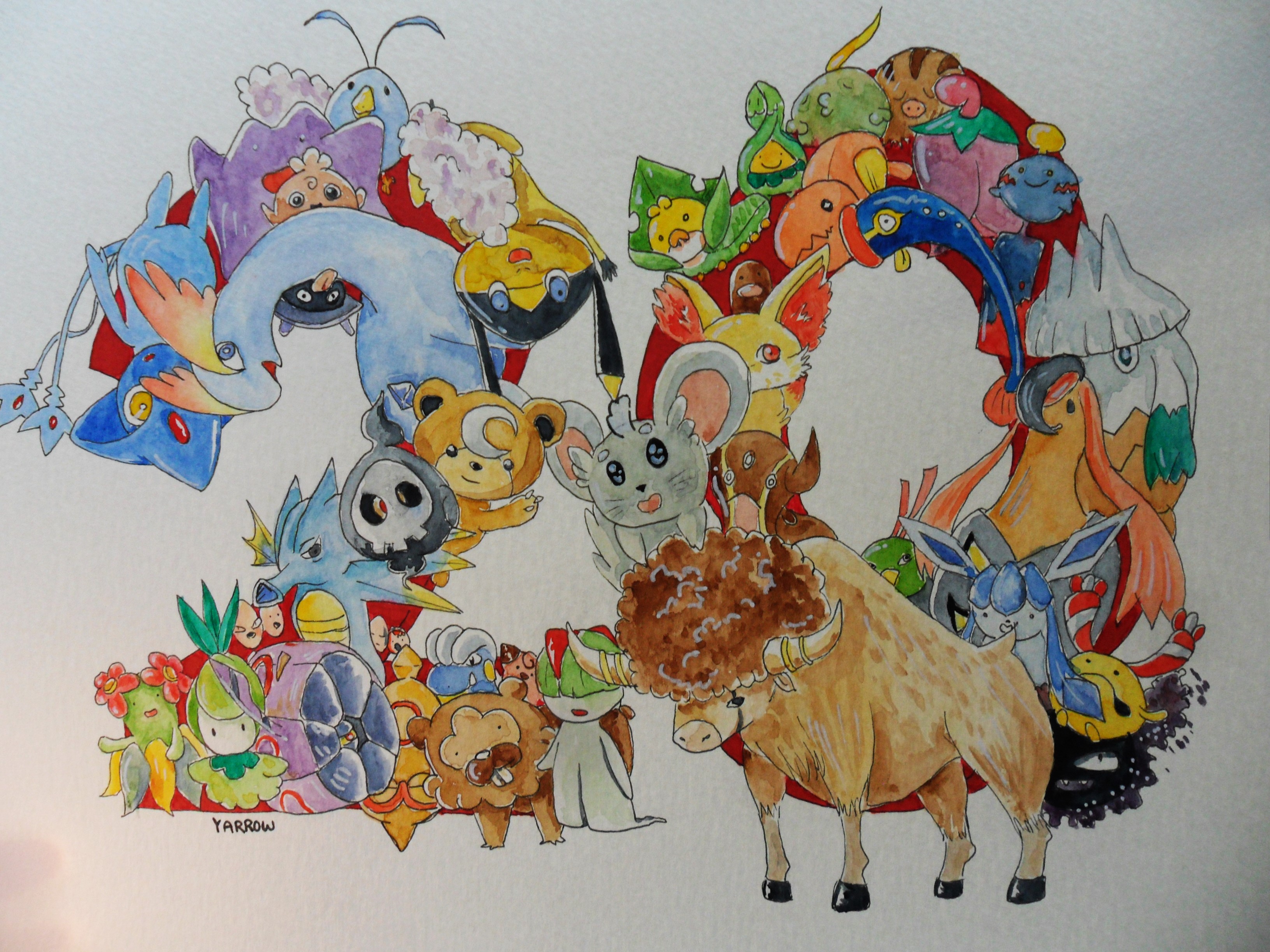Initialement prévue pour une animation sur les 20 ans de Pokémon au moins de Février, il a mis le temps mais il a réussi ! J’aime beaucoup les compositions où il y a masse de détails et réussir à réunir autant de Pokémon sur une même image, c’est un challenge ! Sont-ce des Pokémon tiré au hasard ou bien sont-ils les Pokémon favoris de l’artiste ?