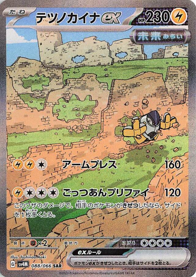 Cette série est officiellement disponible Japon depuis aujourd’hui. Nous connaissons déjà la plupart de ces cartes car elles ont été publiées dans d’autres langues pour la sortie de notre ensemble SV4 Faille Paradoxe. Mais certaines cartes sont des nouveautés que nous devrions avoir dans la prochaine série intermédiaire SV4.5 en janvier (avec l’extension japonaise SV4a Shiny Treasure ex).